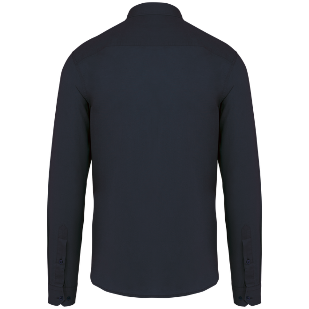 • Botones de plástico reciclado. Cuello con pie de cuello. Canesú en la parte superior trasera.