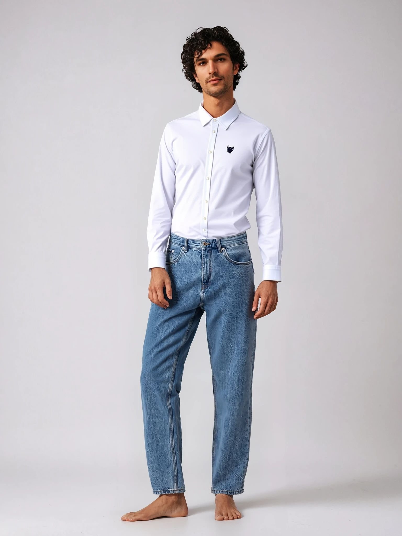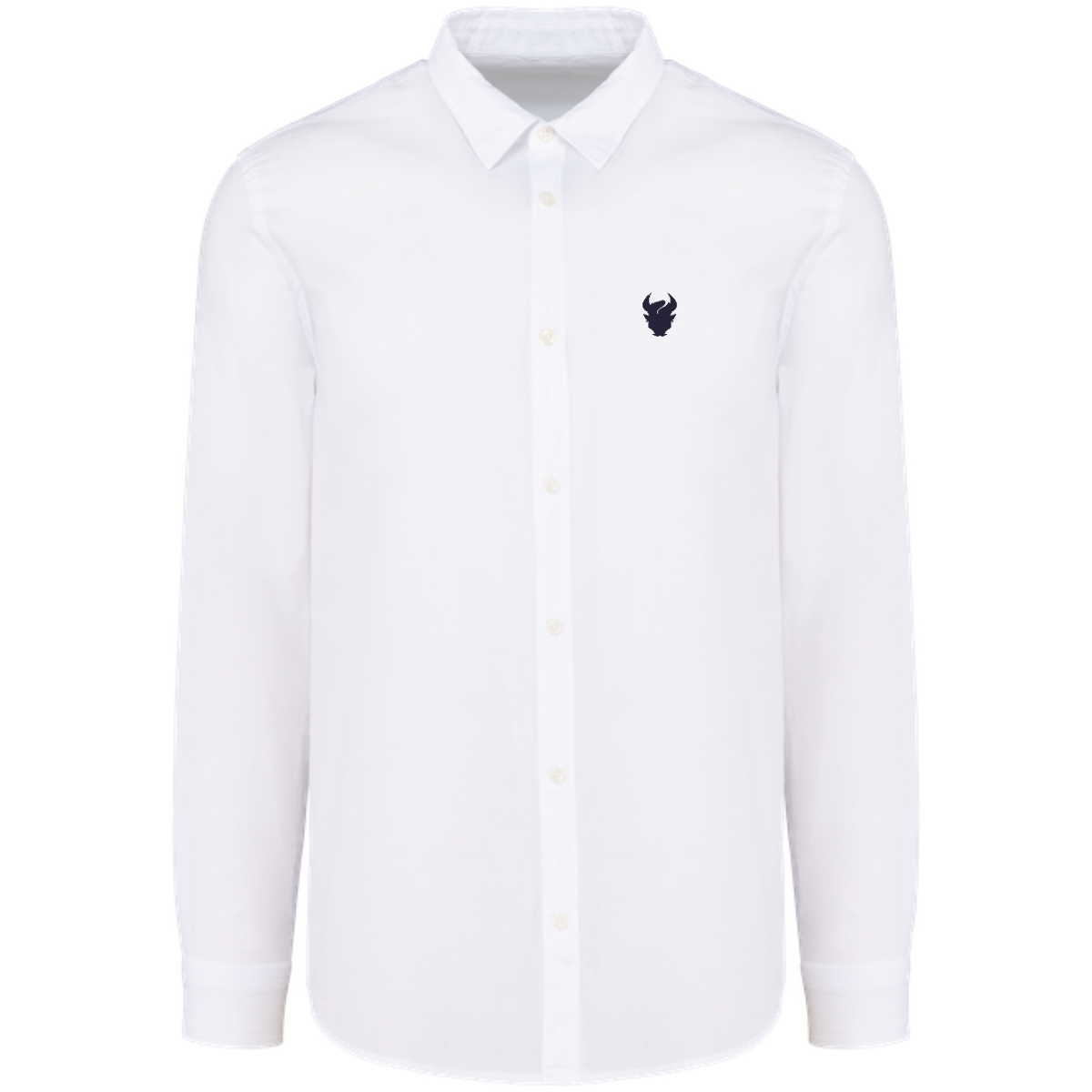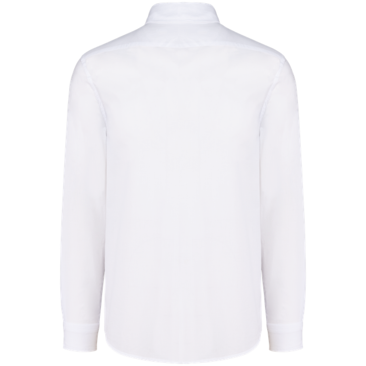 • Botones de plástico reciclado. Cuello con pie de cuello. Canesú en la parte superior trasera.