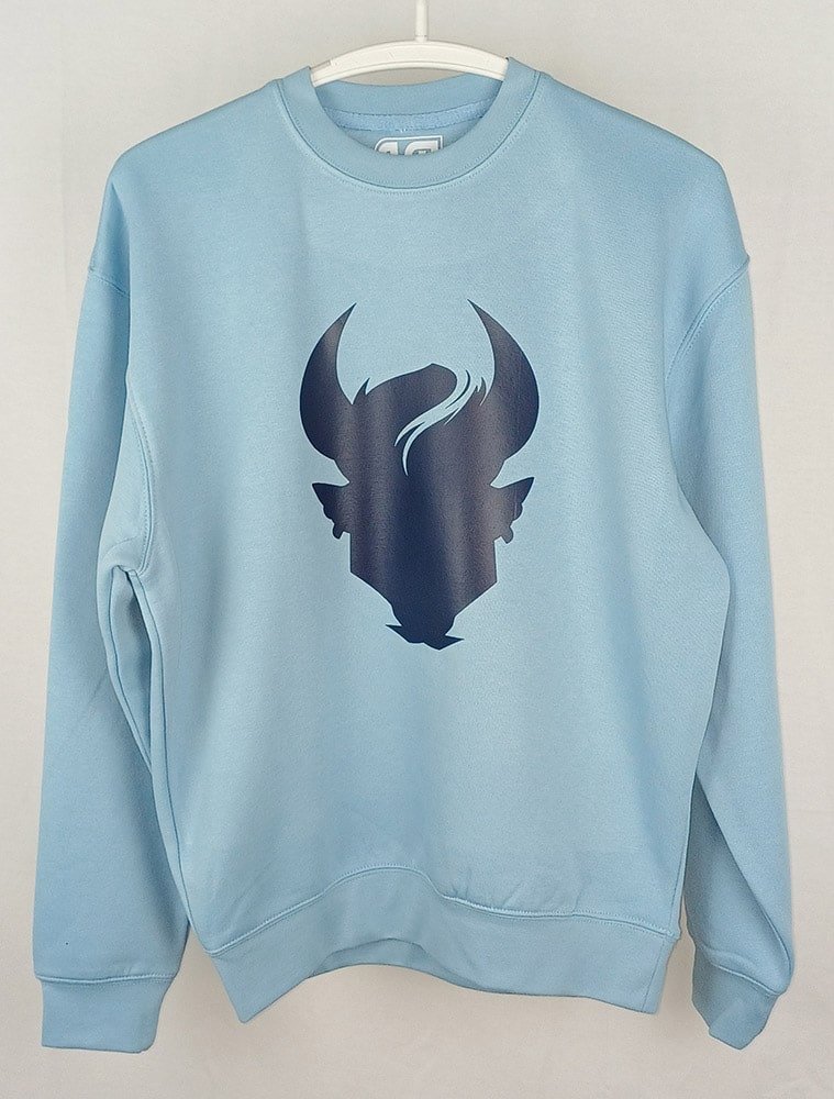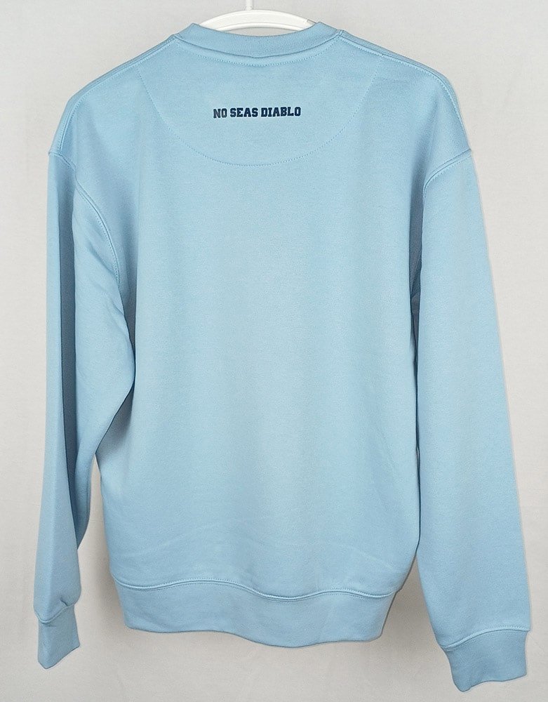 Sudadera clásica unisex con cuello redondo azul con nuestra silueta en el frontal.
