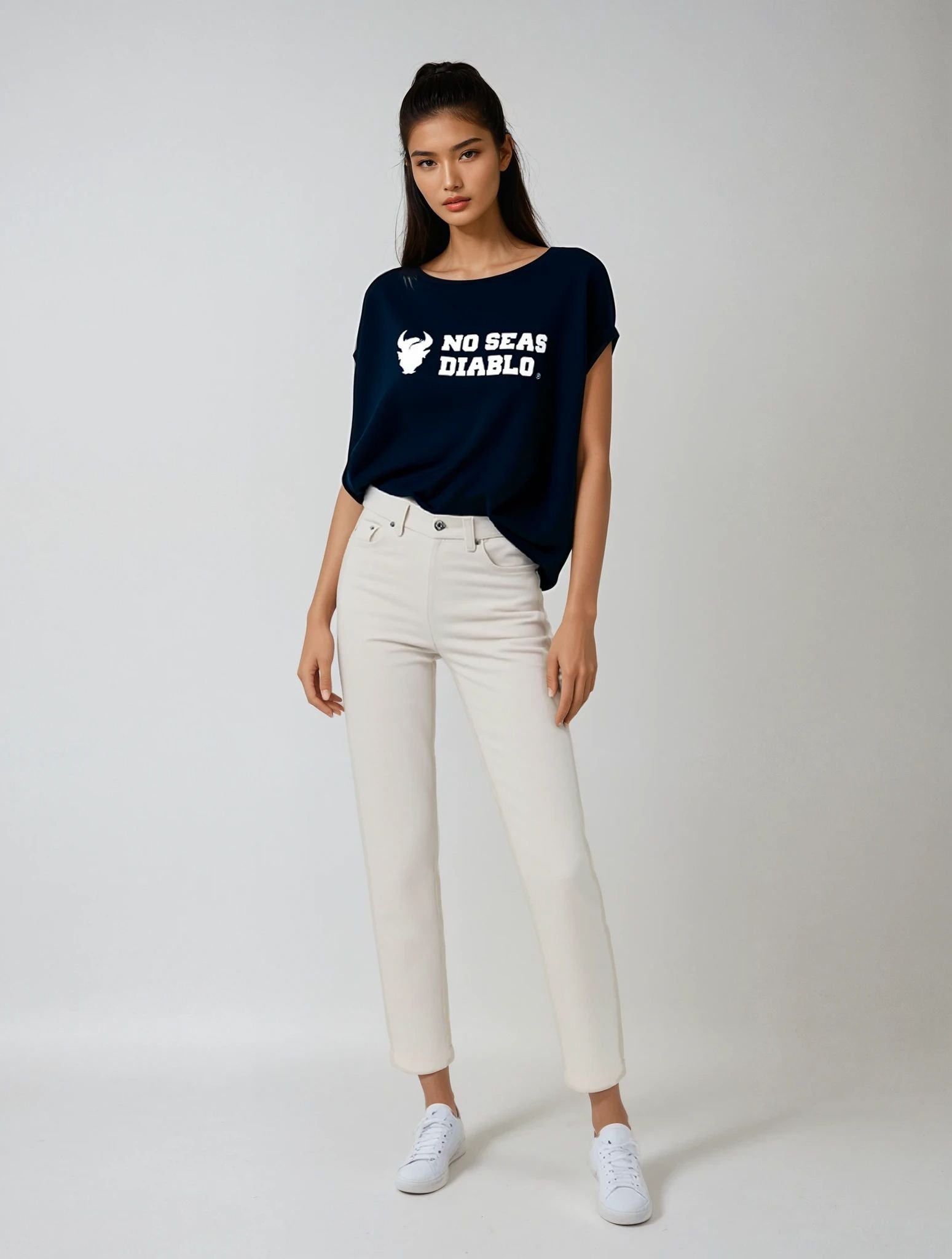 - Corte suelto y distendido con cuello amplio.