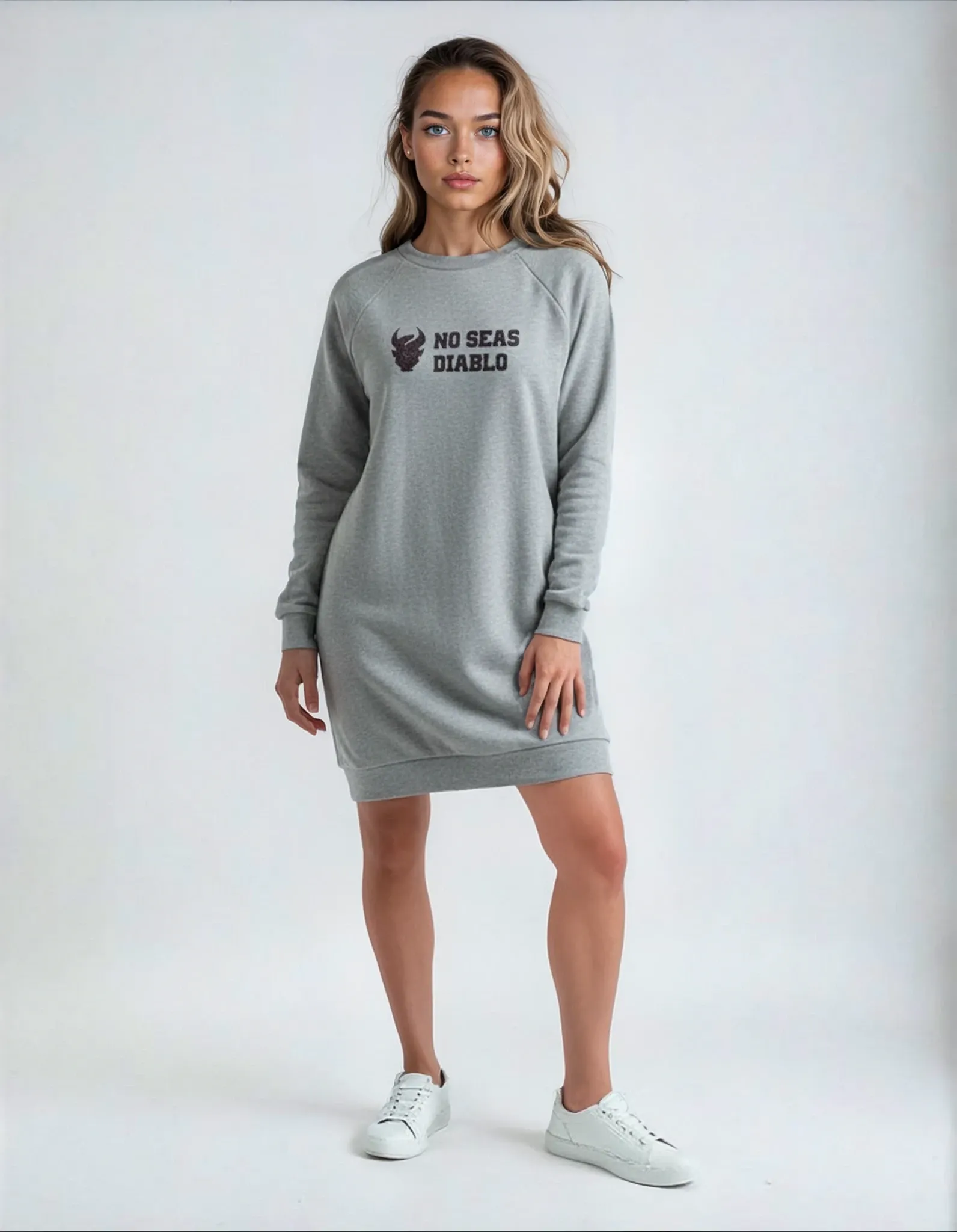-Edición limitada: Vestido Lounge algodón orgánico de felpa con diseño «NO SEAS DIABLO» brillante negro.